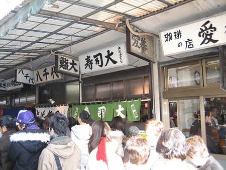 圖片:壽司大、大和,都是築地市場非常有名的壽司店,如果你不是清晨七點就來,就乖乖的等兩小時吧!