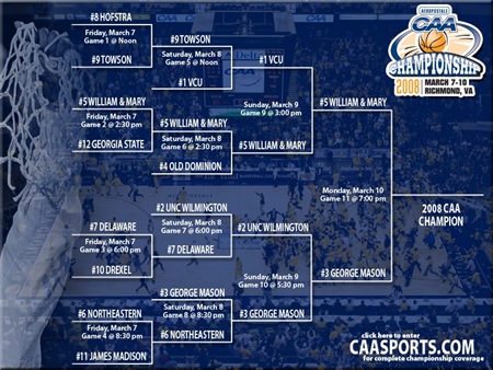 感覺今年的 William & Mary 運氣真是有夠好,有突出的表現又碰上病懨懨的對手,就看他們是否能夠延續好運,再順勢幹掉 George Mason (06 年曾打入 NCAA 四強總決賽),拿下 CAA 的分組冠軍。